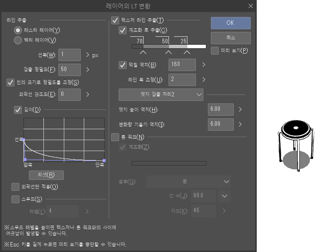 - 미리보기를 설정하고 칠할 실선이 생길 때까지 설정을 변경합니다.