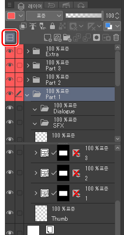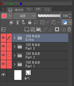이것은 한 회가 끝났을 때의 레이어 팔레트 이미지입니다. 작업하는 동안 식별할 수 있도록 기본 폴더에 색을 추가하고 싶습니다.