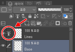참조 레이어가 선화에 사용한 레이어인지 확인합니다.