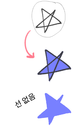 - 바탕색: 에워싸고 칠하기 도구를 사용합니다.