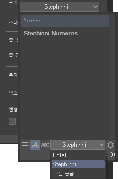 - 텍스트 도구를 설정합니다. 글꼴을 두 개 이상 사용하는 경우 각 글꼴에 대해 설정할 수 있습니다. 여기에는 두 가지 다른 글꼴이 있는데 하나는 텍스트용이고 다른 하나는 숫자용입니다.