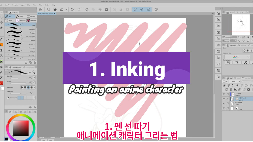 설명하는 데 시간이 많이 걸린다면 단계를 여러 파일로 작게 나누어 나중에 처리하기 쉽게 하세요. 예를 들어 예시 강좌에서 펜 선 따기, 바탕색, 명암으로 나누어 3개의 파일을 만들겠습니다.