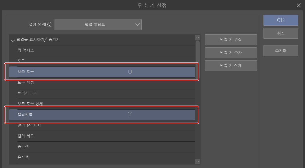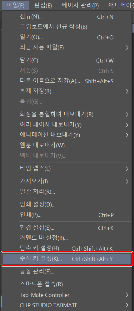 단축키는 단축키 설정과 수식키 설정에서 찾을 수 있습니다.