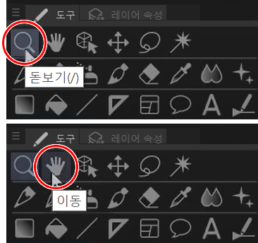 이제 모든 도구를 살펴보겠습니다. 여기에 확대/축소와 손 도구가 있는데
