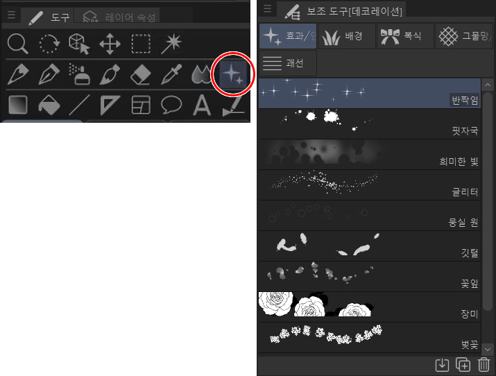 이 데코레이션 도구에는 근사한 장식 브러시가 모여 있습니다. 정말 재미있으니 한번 살펴보세요. 식물, 특수 효과, 꽃, 패턴과 같은 모든 종류의 장식이 있습니다.
