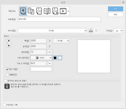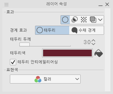 - 레이어의 기본색에 사용하는 브러시가 채색하기에 충분할 정도로 촘촘하거나 단색이어야 가장자리와 브러시의 색이 섞이지 않습니다.