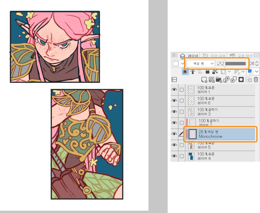 색을 하나씩 변경하지 않고 여러 색을 사용할 경우 색 설정이 매우 중요합니다. 개인적으로 잘 사용하지 않는 전문 아티스트의 요령이지만 아주 유용합니다.