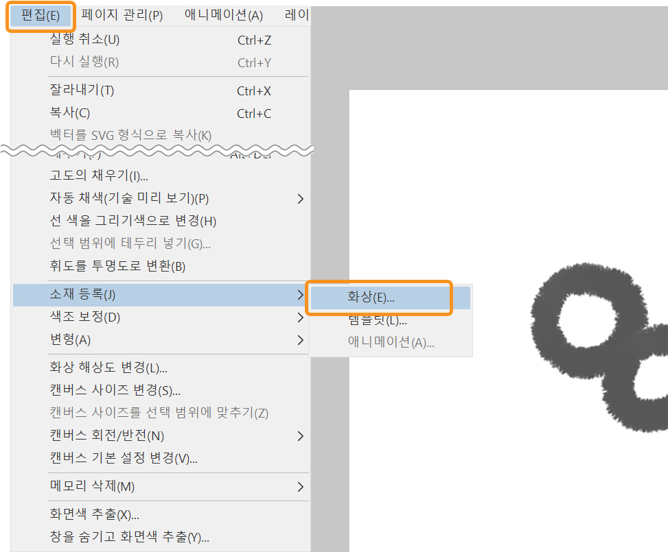 - 편집 > 소재 등록 > 화상으로 이동합니다.