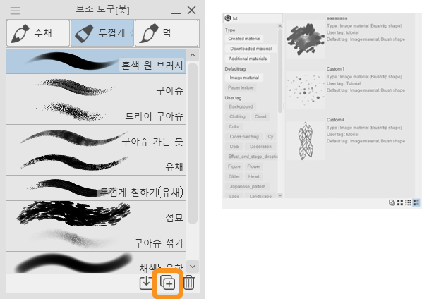 브러시 끝을 저장할 위치를 선택하고 태그를 추가하면 소재 팔레트에서 찾기 쉽습니다.
