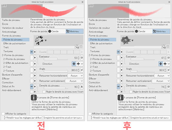 - 개별 브러시 설정을 수정할 수도 있습니다.