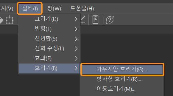 그 다음 필터 > 흐리기에서 가우시안 흐리기를 선택합니다. 아래 gif에서 볼 수 있듯이 필터의 강도를 조정하고 적용하면 앞서 만든 배색이 흐려집니다. 마지막으로 그 배색을 선택하고 확장하여 전체 캔버스를 채우고 레이어 불투명도를 약간 줄입니다.