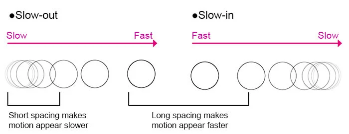 Slow in and slow out is a principle related to expressing momentum. As an object gains and loses momentum, the start and end of a motion will typically be slower than the middle.