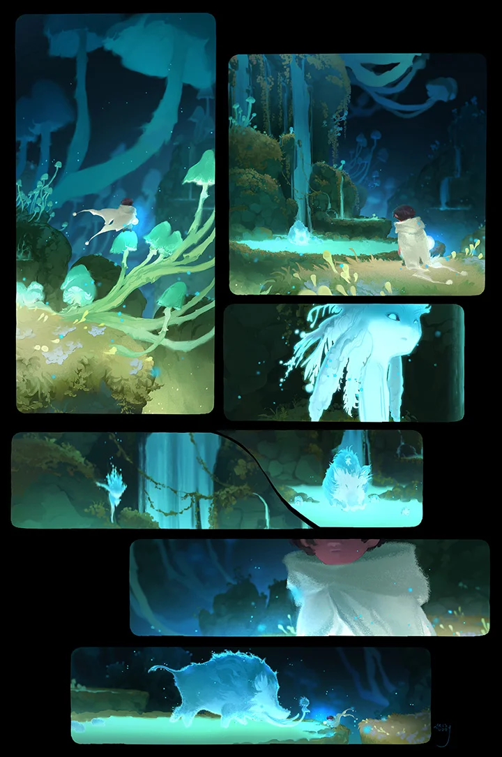 A unified color palette can bring unity to your overall comic. While you don’t necessarily need to limit your color palette for every scene, think about the atmosphere of your story and what colors would be appropriate. Adding a color adjustment layer with apps like Clip Studio Paint as a final step in your comic pages can help create this sense of consistency.