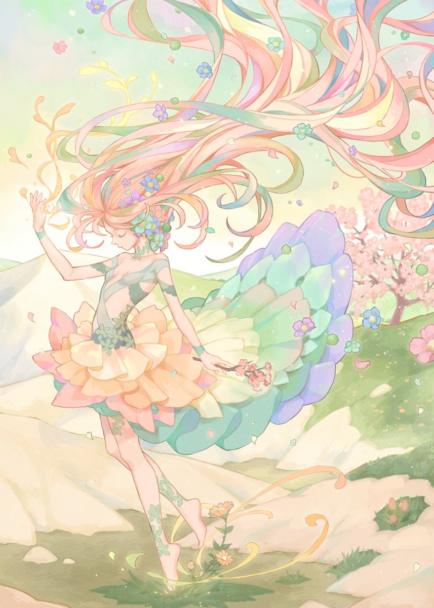 It seems that the everyday life of a girl who can see fairies is a fun one. The girl's expression is also pleasant, making those viewing this artwork feel cheerful and bright.