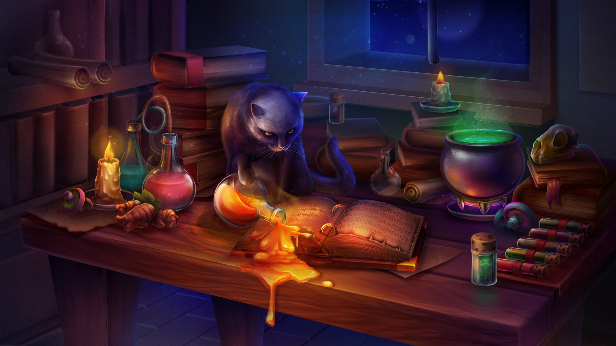We were attracted to this illustration because of its unique atmosphere and because it gives us a sense of the everyday life of a witch. It also conveyed that cats and witches must be together.