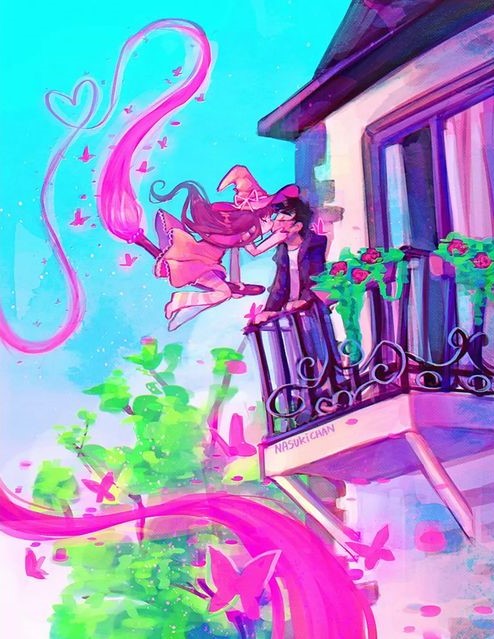 This carefully drawn work with soft brushwork and warm colors caught our attention. We are interested in the relationship between the little witch and the boy. The dog is curious about the witch, which is also very cute.