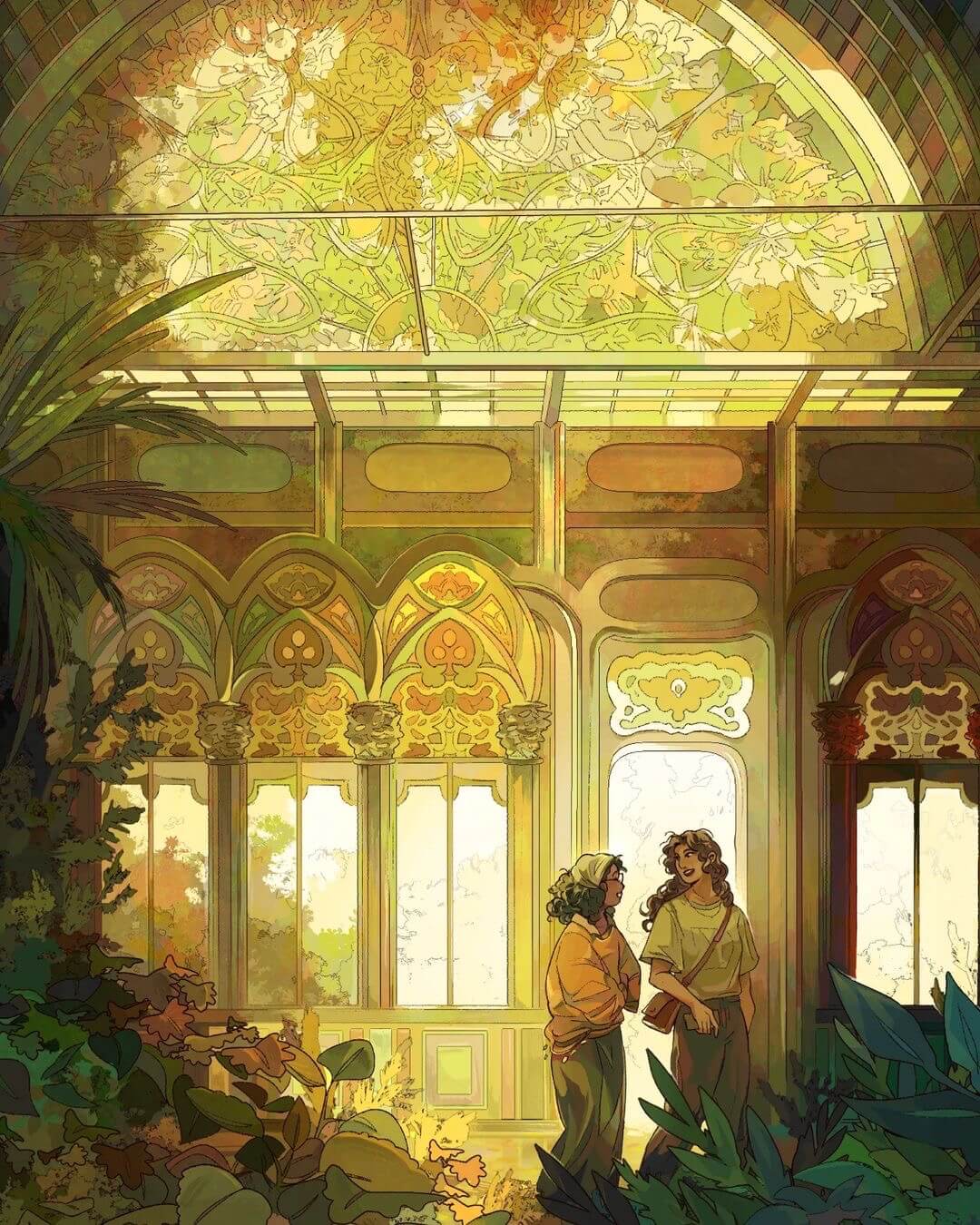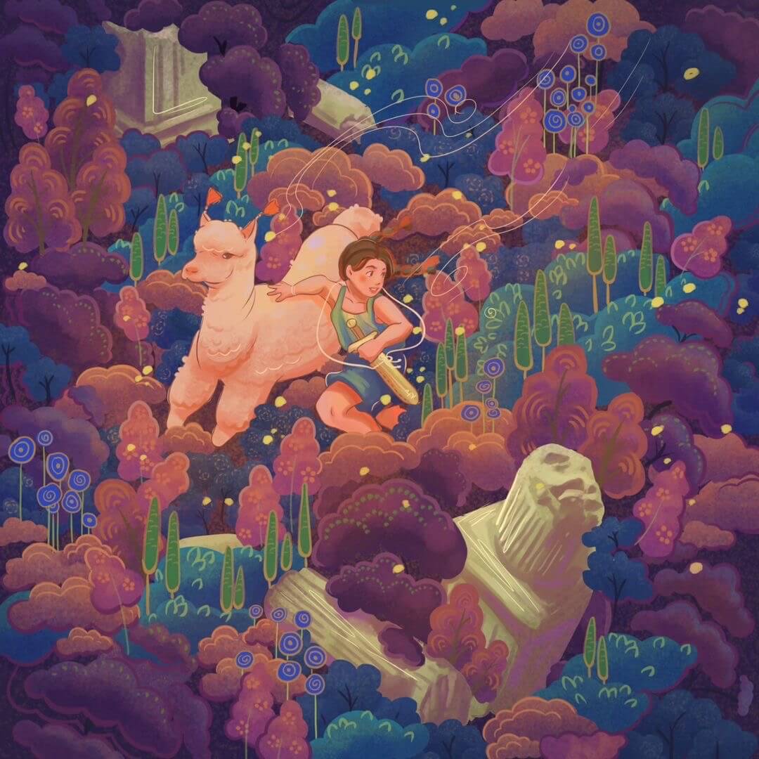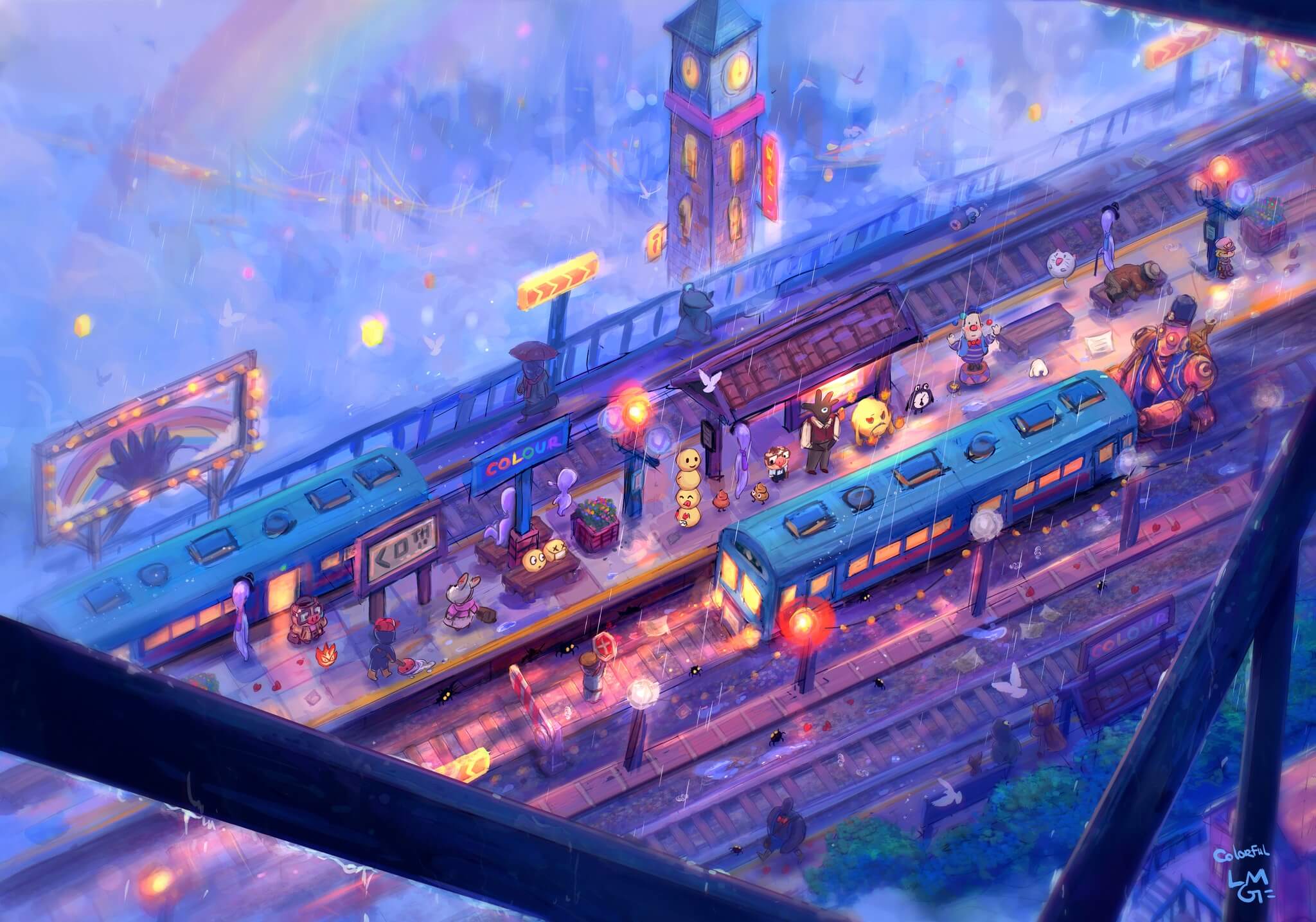 The lively characters really draw your eyes into the unique and colorful world. The artist’s skillful use of perspective has created a wonderful, dynamic work.