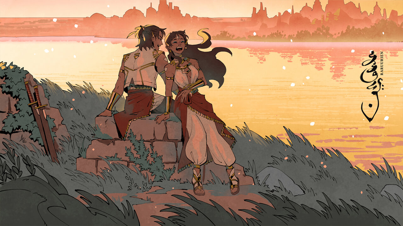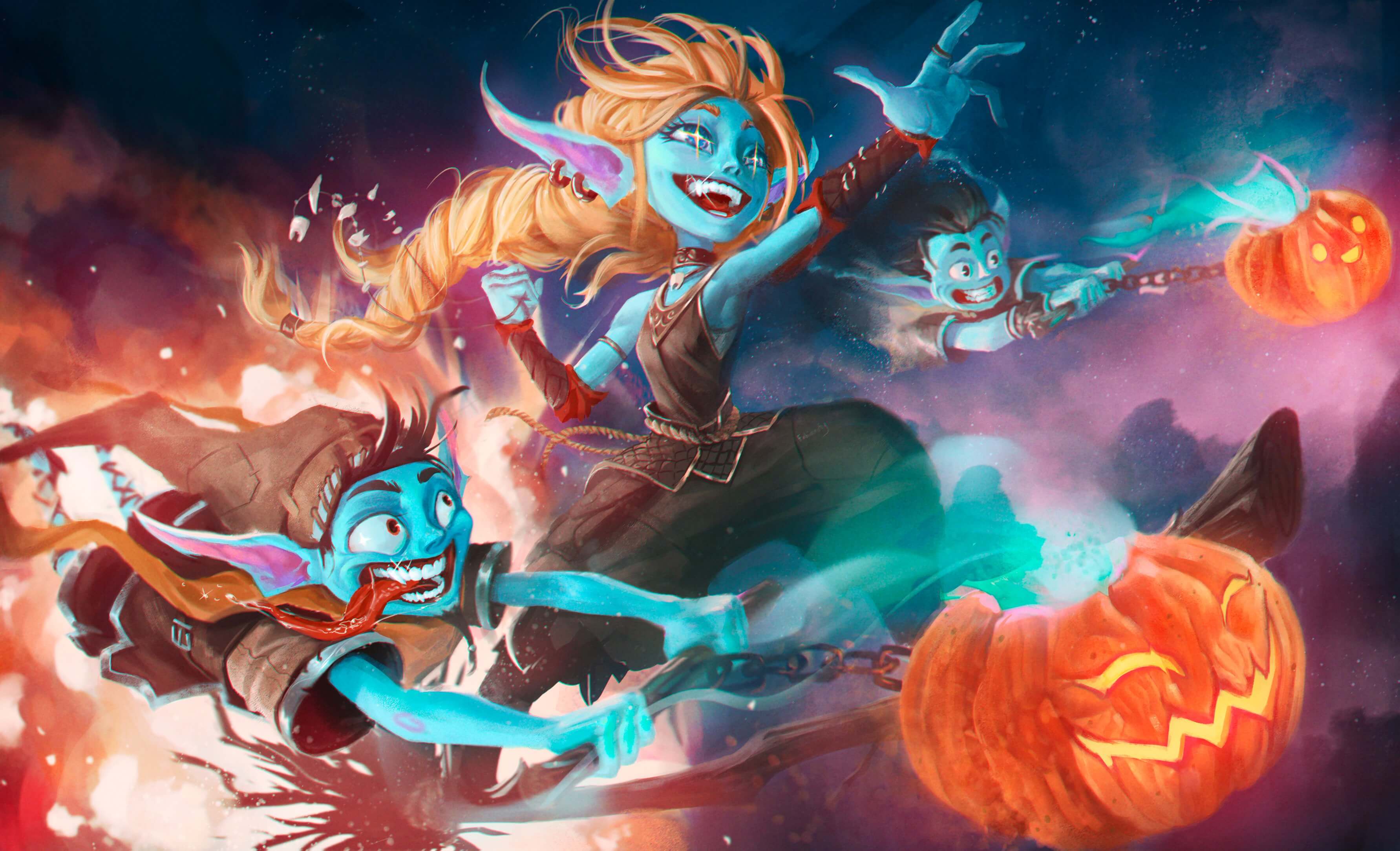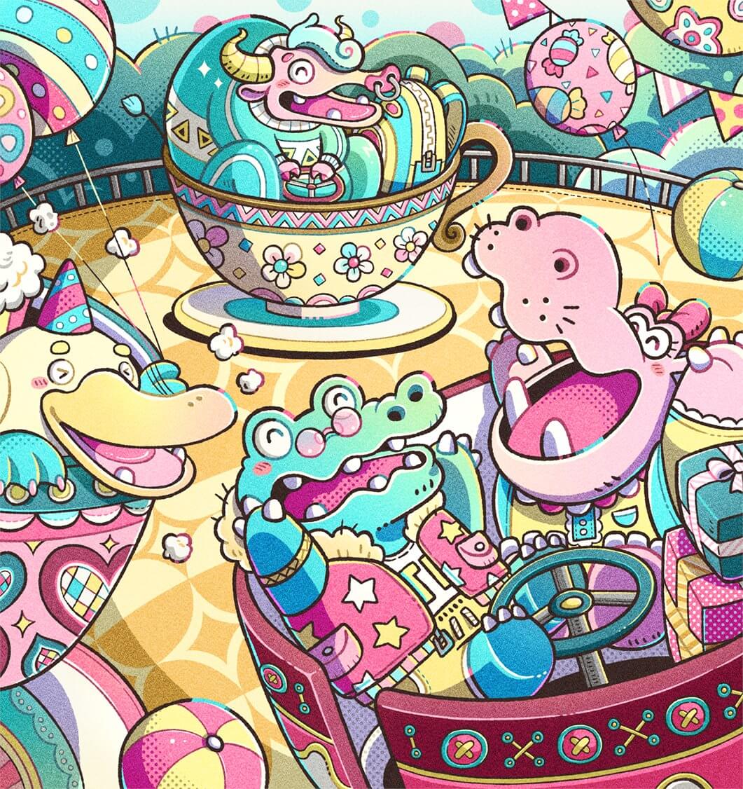 We’re delighted by this artwork full of gleeful smiles in a fantasy world. It fits perfectly with the theme and is very energetic. Just looking at these mischievous characters made us smile as well.