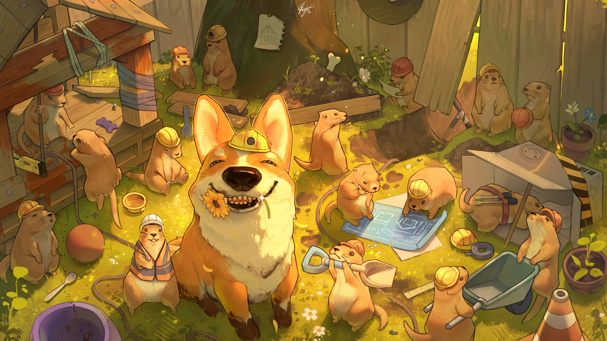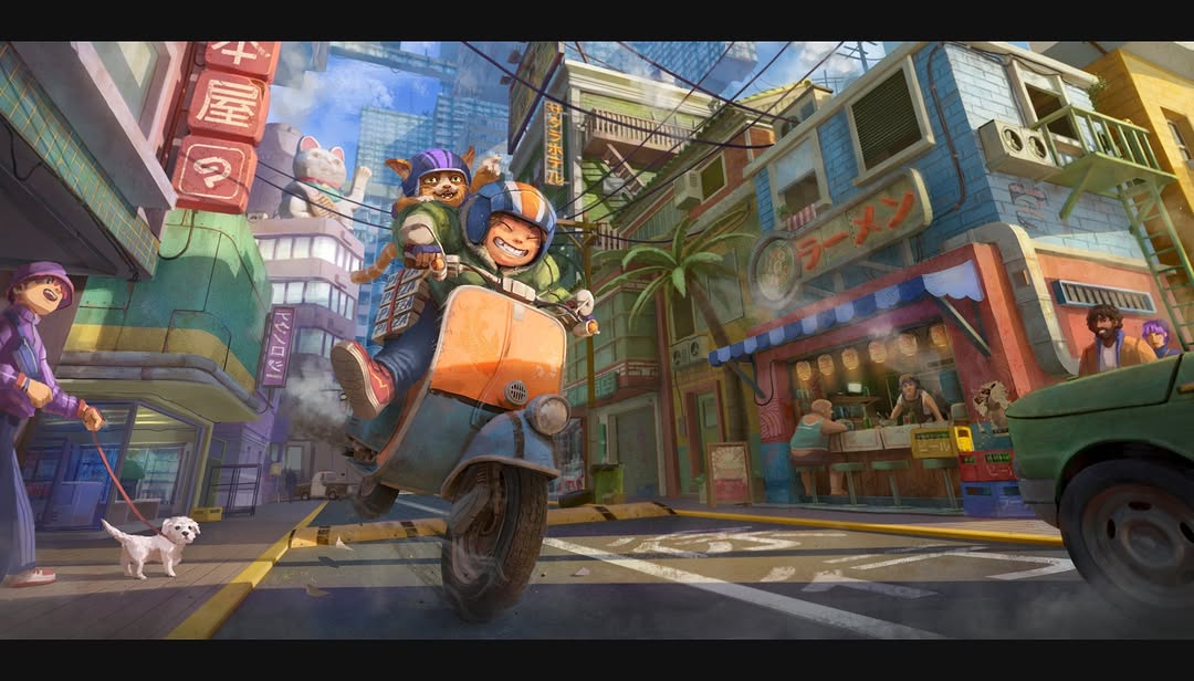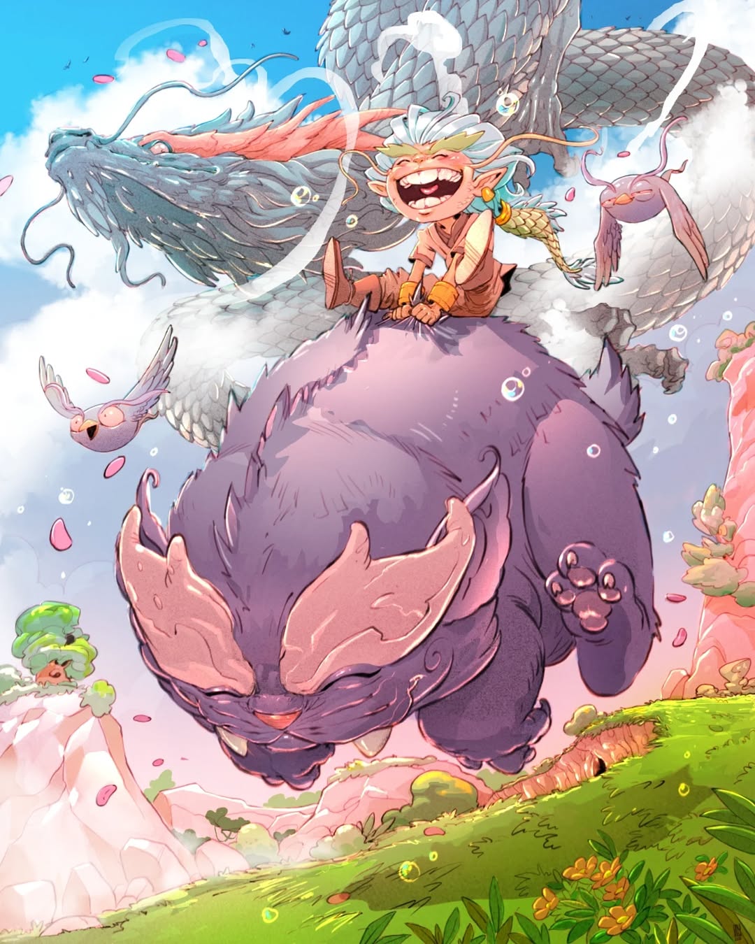 We’re delighted by this artwork full of gleeful smiles in a fantasy world. It fits perfectly with the theme and is very energetic. Just looking at these mischievous characters made us smile as well.