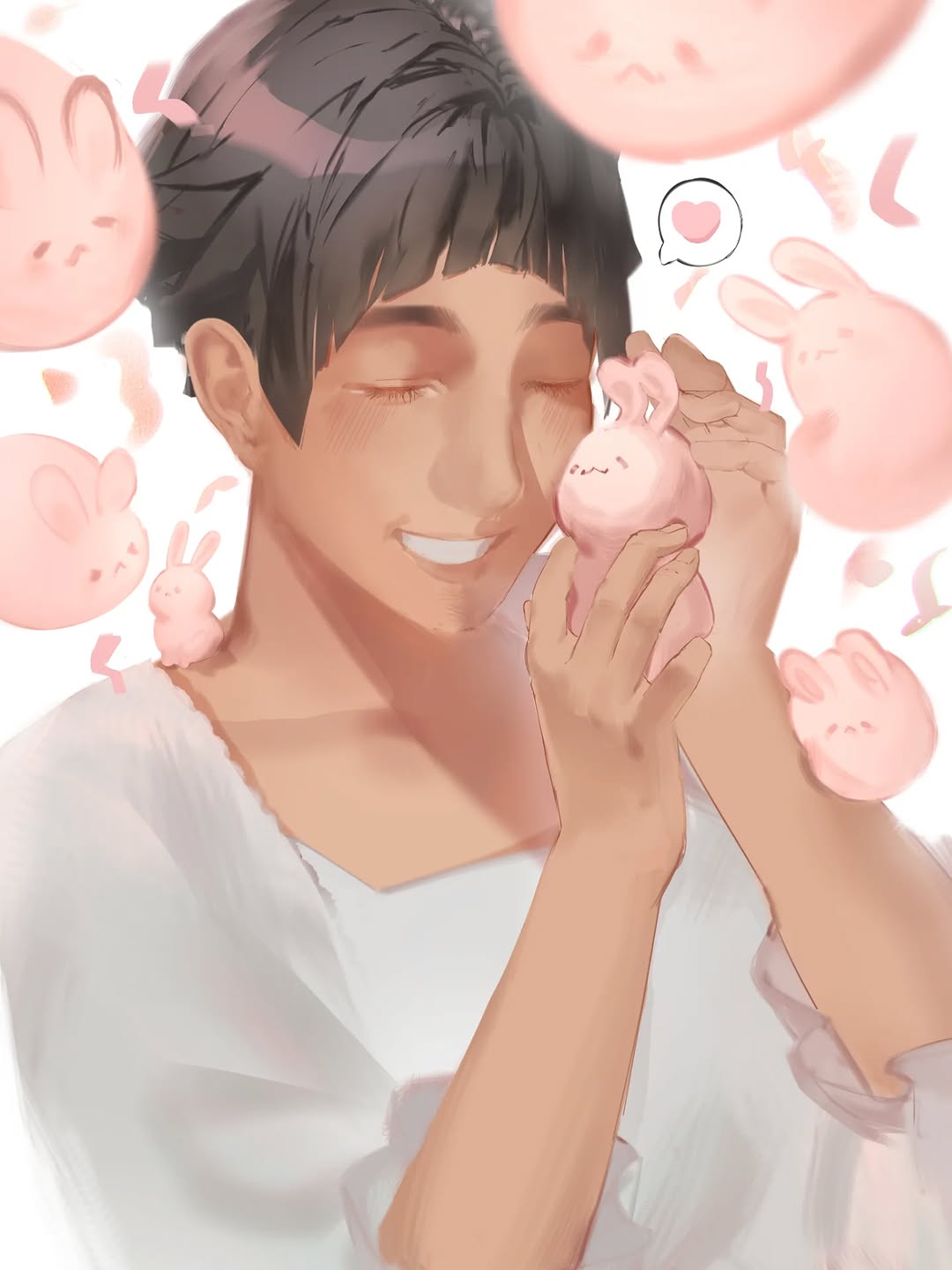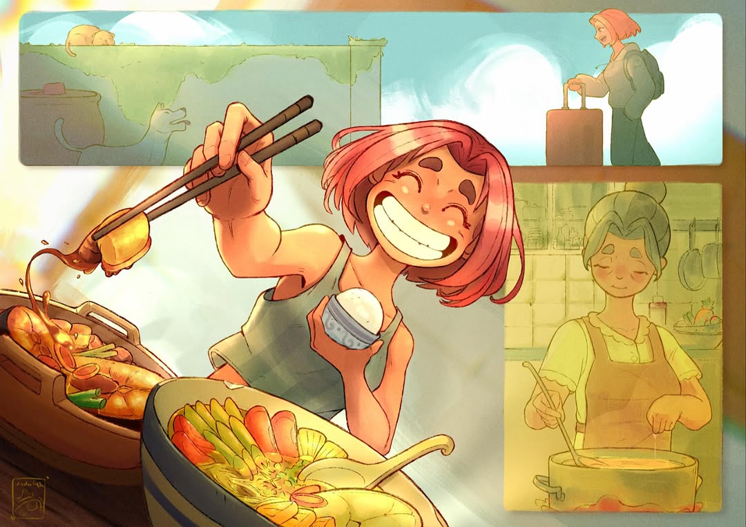 The storytelling and the relationship between the two characters in this artwork warmed our hearts. The characters, cloth, and wood textures were expressed delicately, giving it a soft atmosphere.