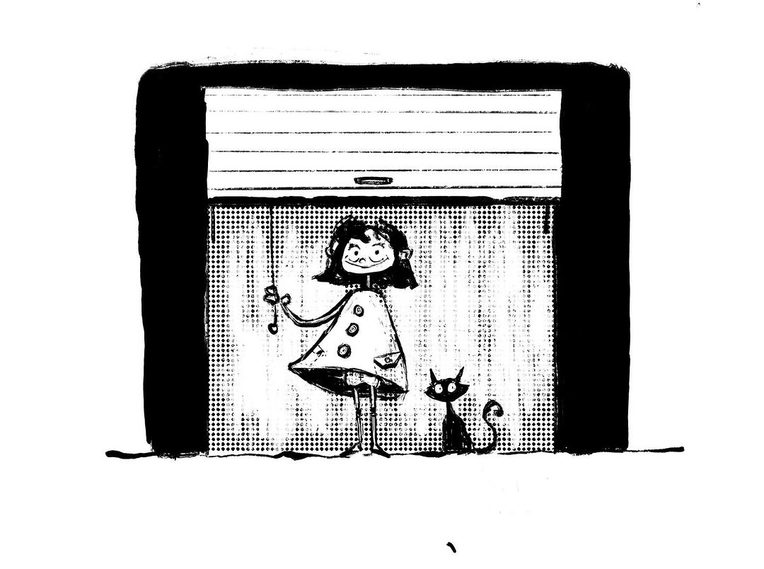 The characters are vividly drawn and so expressive. We were drawn into the mysterious world of skyscrapers and ground level streets in this artwork.