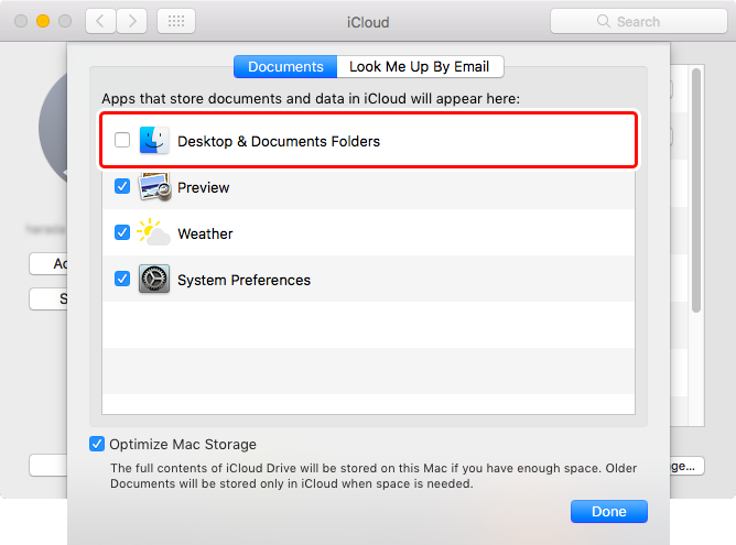 In macOS Sierra, the setting to save the [Documents folder] in iCloud Drive is enabled during installation and updates.