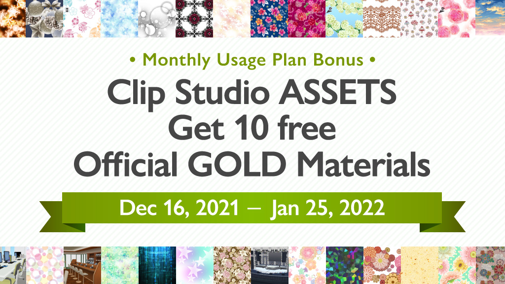 All new and existing customers of the single-device, dual-device, or premium monthly usage plans can get up to 10 of their favorite materials from the 500 Official GOLD Materials made available on Clip Studio ASSETS for free!