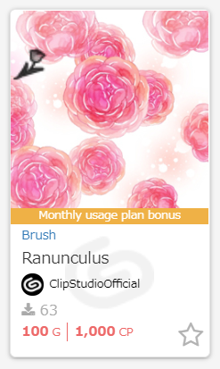 - Click on an official material tagged with, Monthly usage plan bonus, on Clip Studio ASSETS