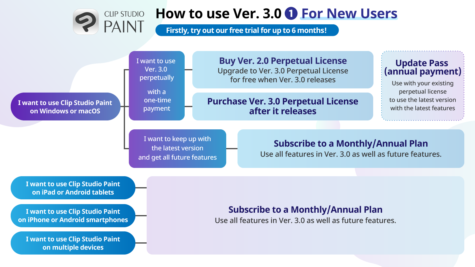 You can use Clip Studio Paint Ver. 3.0 by getting any of the following.