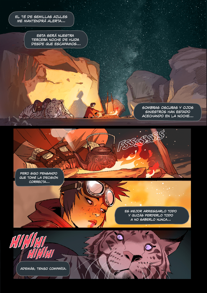 Si hay escenas con mucho diálogo, intenta variar las composiciones de las viñetas para que el flujo de la historia siga siendo interesante. En lugar de imágenes estáticas de los personajes hablando, una viñeta podría mostrar la silueta del personaje, un objeto relevante para el diálogo, un primer plano de una expresión o una acción que ocurra durante el diálogo.