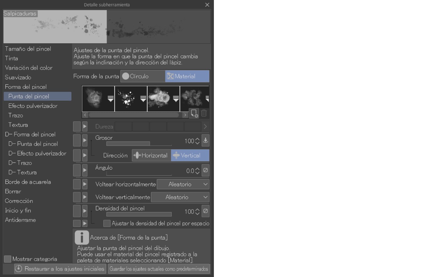 También puedes importar pinceles hechos para otro software, como los pinceles ABR de Photoshop. Ten en cuenta que los pinceles ABR pueden verse ligeramente diferentes cuando se instalan en Clip Studio Paint, por lo que es ideal buscar creadores de pinceles que proporcionen pinceles de Clip Studio Paint (.sut) o que hayan probado sus pinceles ABR en Clip Studio Paint.