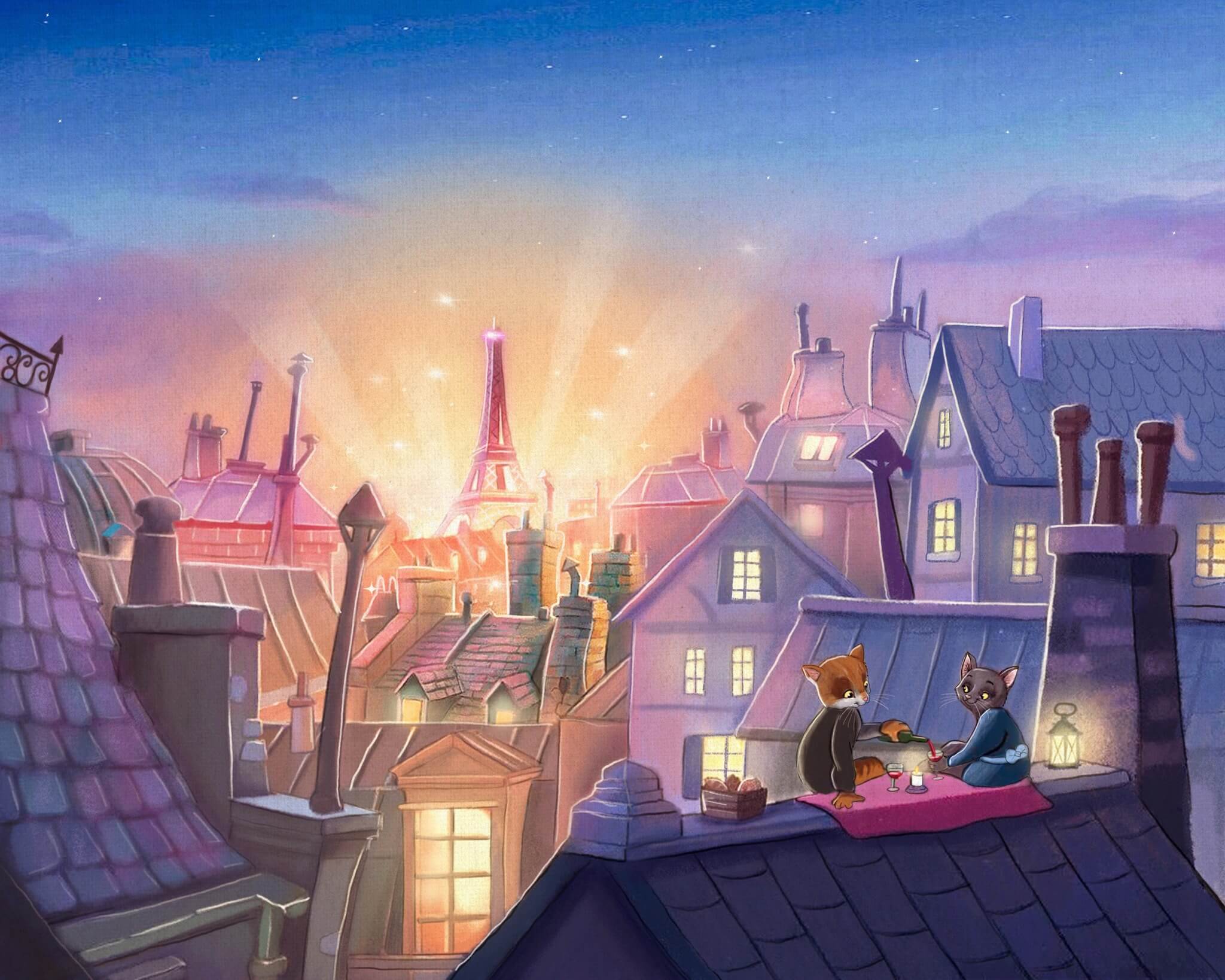 Una cena romántica en un lugar especial de la ciudad.... ¡Nos hace suspirar de amor! Los colores suaves y los trazos delicados son maravillosos y aportan una atmósfera casi palpable a la obra.