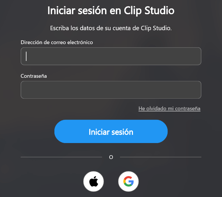 Puedes vincular tu cuenta de Clip Studio con tu cuenta de Apple o Google.