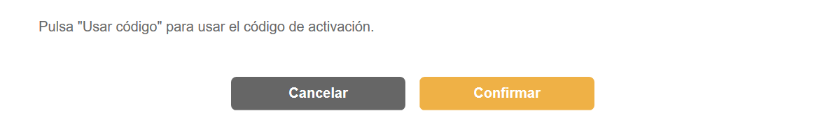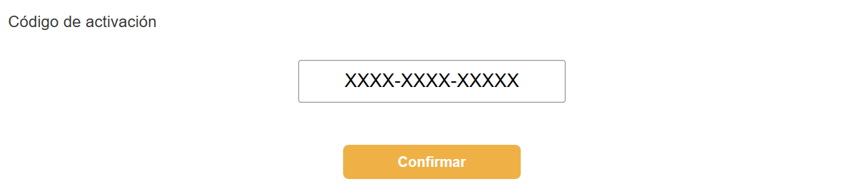 Al hacer clic en Código de activación, se abrirá una nueva pantalla, tras introducir el código, haz clic en Confirmar.