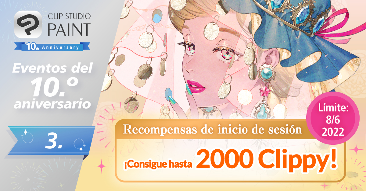 ¡Celebra el 10.º aniversario de Clip Studio Paint con nosotros! La tercera ronda de recompensas de inicio de sesión empieza hoy mismo, 19 de mayo, y termina el 8 de junio.