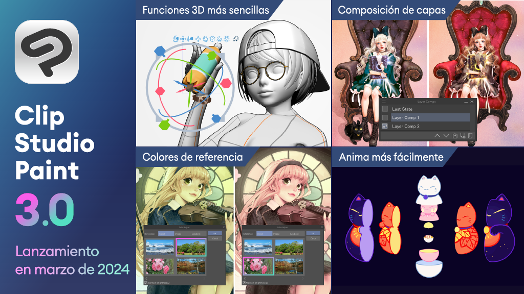 Tenemos previsto lanzar la versión 3.0 de Clip Studio Paint en marzo de 2024.