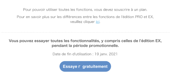 ▪ Démarche à suivre [2] Pour les personnes qui n'ont jamais utilisé l'essai gratuit de 30 jours pour EX