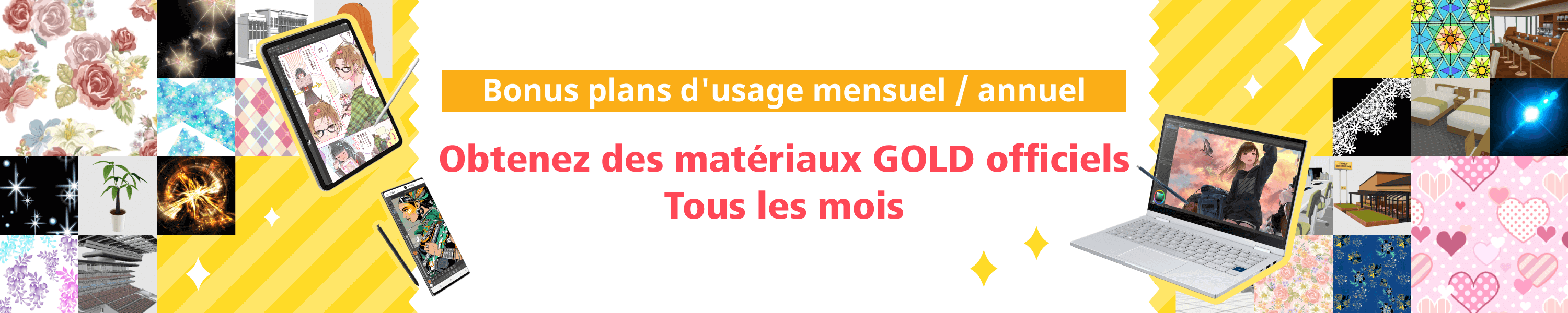 Matériaux GOLD officiels de CLIP STUDIO ASSETS pour les utilisateurs des plans mensuel et annuel