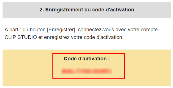 1. Votre code d’activation sera envoyé à l'adresse e-mail fournie au moment de l'achat sur le store CLIP STUDIO.