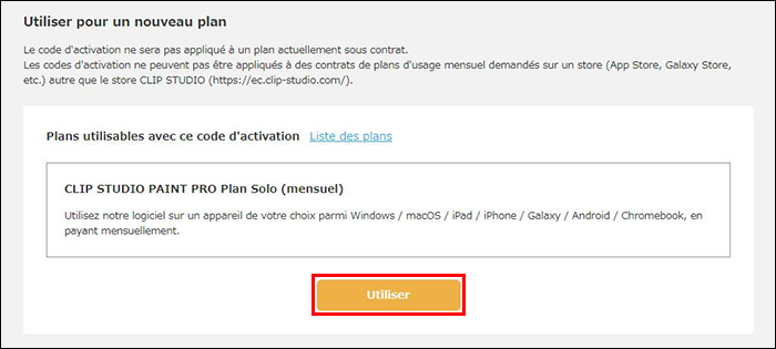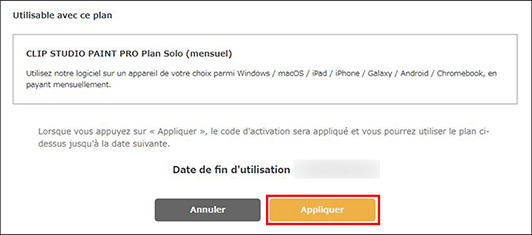 Pour les utilisateurs appliquant un code à un contrat souscrit via le store CLIP STUDIO