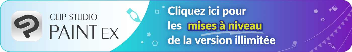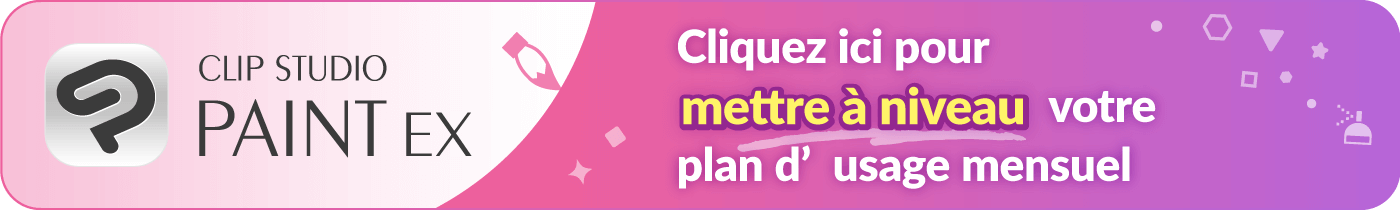 Si vous utilisez actuellement DEBUT, PRO ou EX Ver.1, Ver.2.0 ou Ver.3.0, profitez de cette opportunité pour télécharger la dernière version de CLIP STUDIO PAINT EX (mise à jour de décembre 2024 / Ver.3.2).