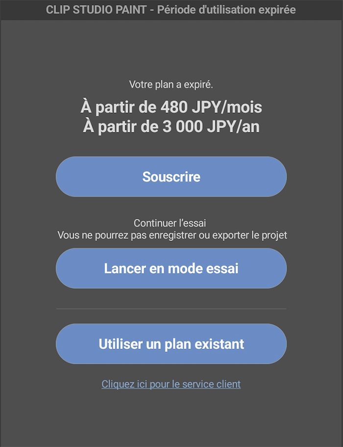 - Les utilisateurs qui souscrivent actuellement à un plan d'usage mensuel ou annuel de CLIP STUDIO PAINT PRO