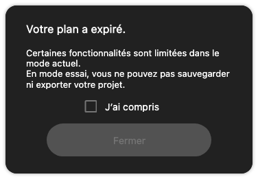 Une fois la campagne terminée, lorsque vous lancerez CLIP STUDIO PAINT, la boîte de dialogue suivante s'affichera. Cochez la case « J'ai compris », puis cliquez sur « Fermer ».