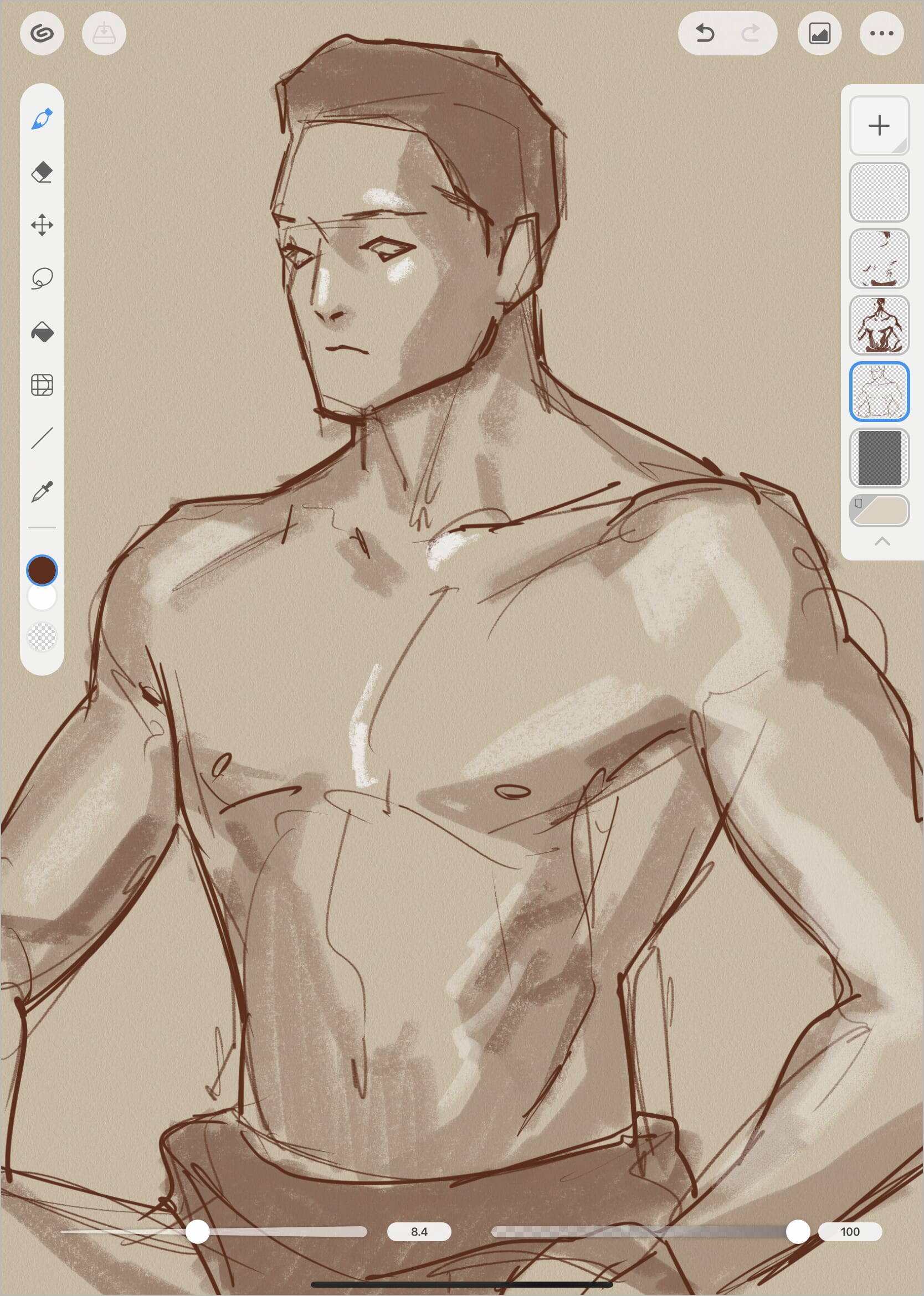 Another benefit of digital croquis sketches is the various pens or brushes you can use. These mimic the feeling and look of traditional drawing media. You can also configure brush tool settings to your personal drawing preferences. I also use a customized brush when digitally drawing.