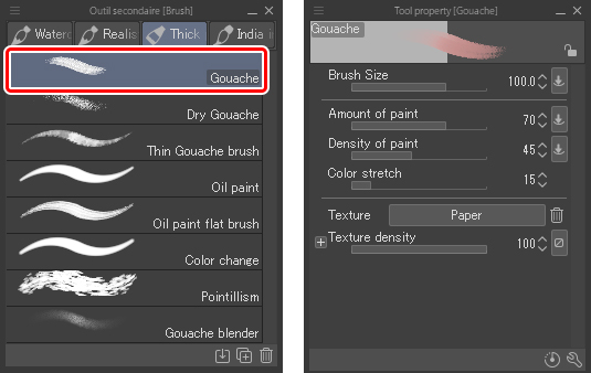 (2) Paint the first coat. Choosing a lighter color than what you envisioned will help the rose not look too heavy when applying the shadows. For this part, I’ll use [Gouache] in the [Brush] tool under [Thick paint].