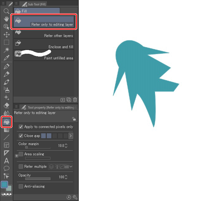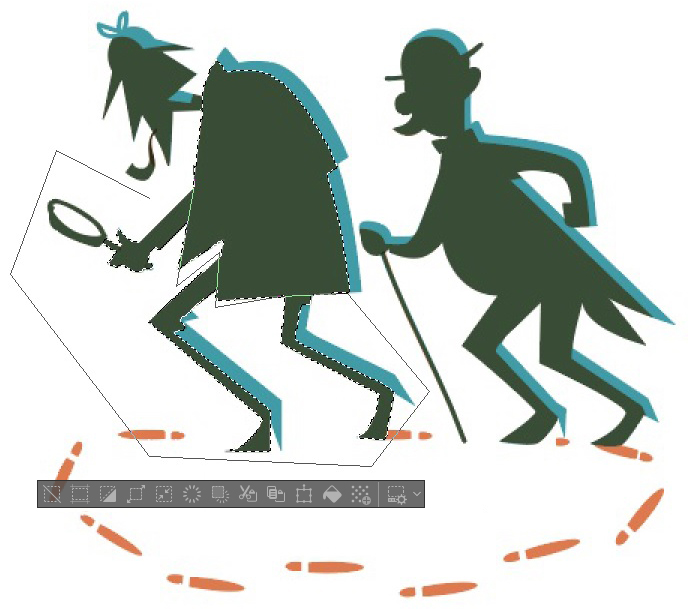 I will add a couple of shadows on the coat. In the orange layer, I select the area with the Polyline tool and fill it with orange using the Fill tool.