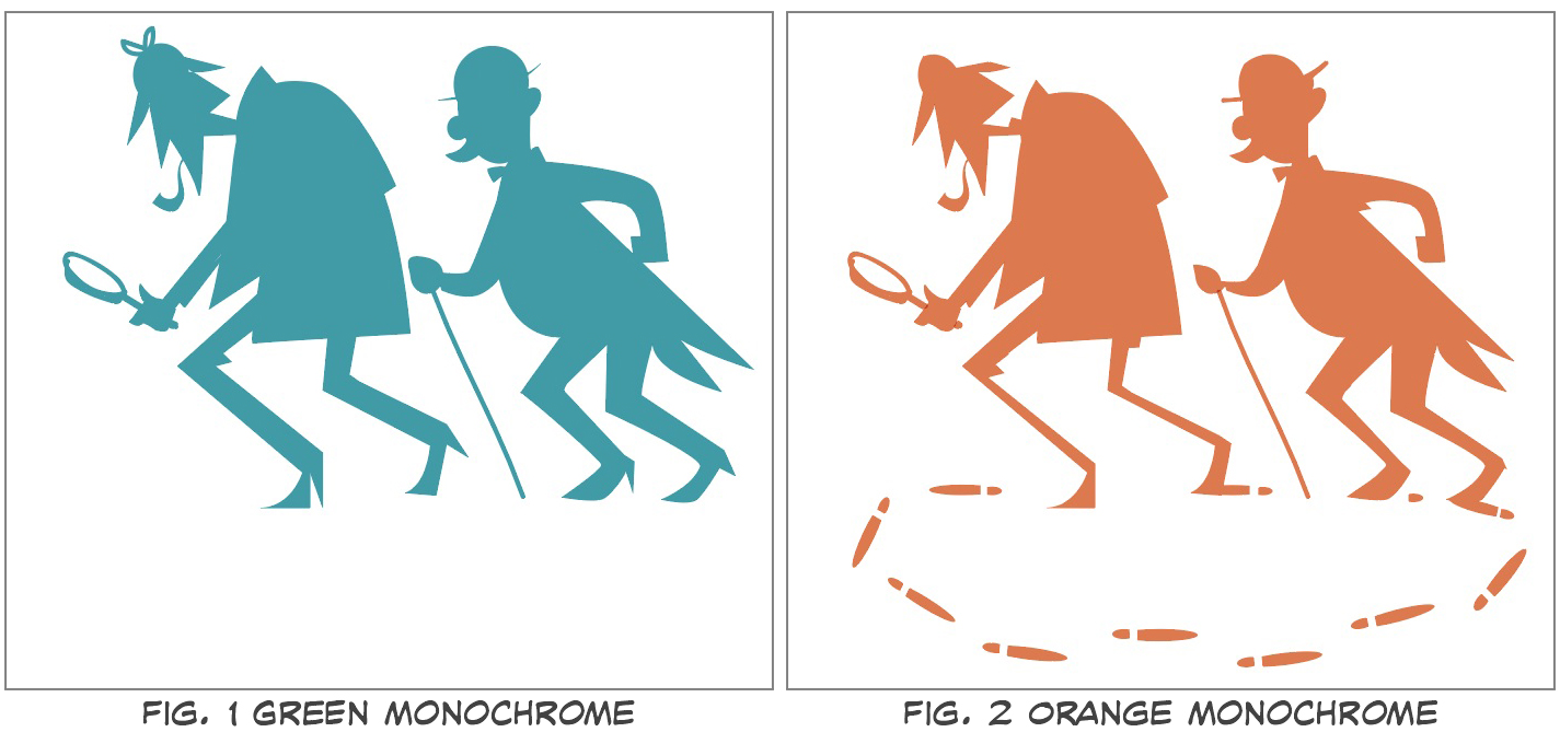 For traditionally printed duotone items such as posters or photographs, the printing process requires the creation of a printing plate for each ink color. These monochrome plates were traditionally used with the color black. For our digital duotone image, we will use solid black filled shapes to indicate where our chosen tone will be placed.