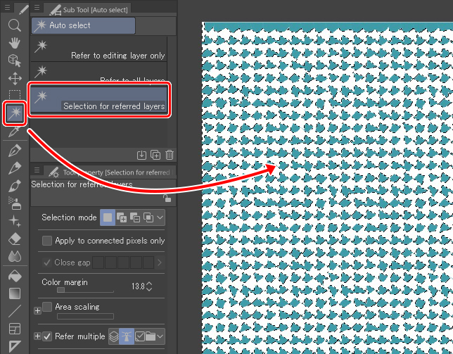 To add texture to the coat, select the area where the coat is using the Auto Select and Polyline tools.