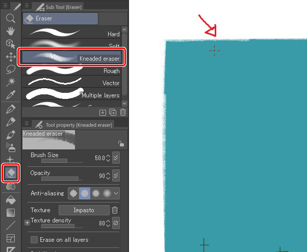 We can emulate a piece of paper by erasing the edges of the illustration with the Kneaded eraser.
