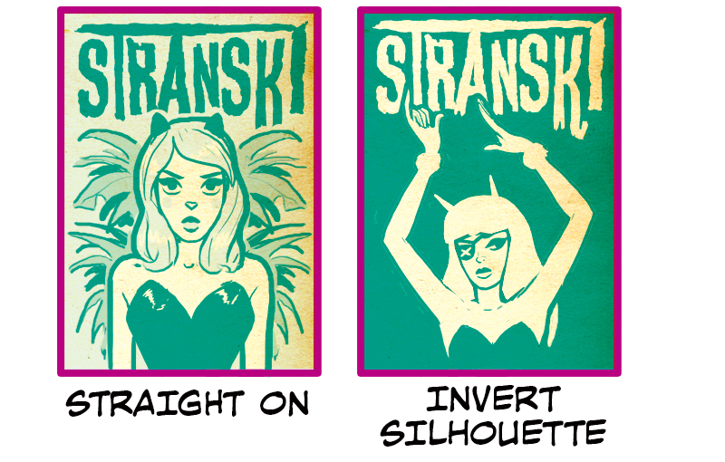 Straight On & Invert Silhouette are compositionally similar in how the character is placed: a half body facing forward. Straight On features a background element that fans out from behind the figure. It’s particularly impactful because the character’s emotions also seem to be bursting forth. Invert Silhouette also has a high visual impact, but instead of that coming from the character or background elements, it comes from the high contrast background that pushes the eye in towards the character in the center.